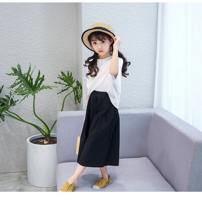 送料無料 ガウチョパンツ カットソー 半袖 スカーチョ ワイドパンツ スカンツ ボトムス トップス 無地 シンプル 子供 キッズ ジュニア 女の子 女児