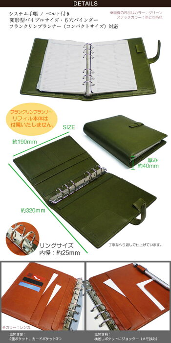 【ベルト付き】システム手帳 【変形型 バイブルサイズ】【栃木レザー】 / 本革 システム手帳 バイブル 革 / バイブル 聖書 フランクリンプランナー コンパクトサイズ 6穴 バインダー / 日本製 手作り 名入れ 可能 / 送料無料 / 手帳 手帳カバー オーダー 革 2021